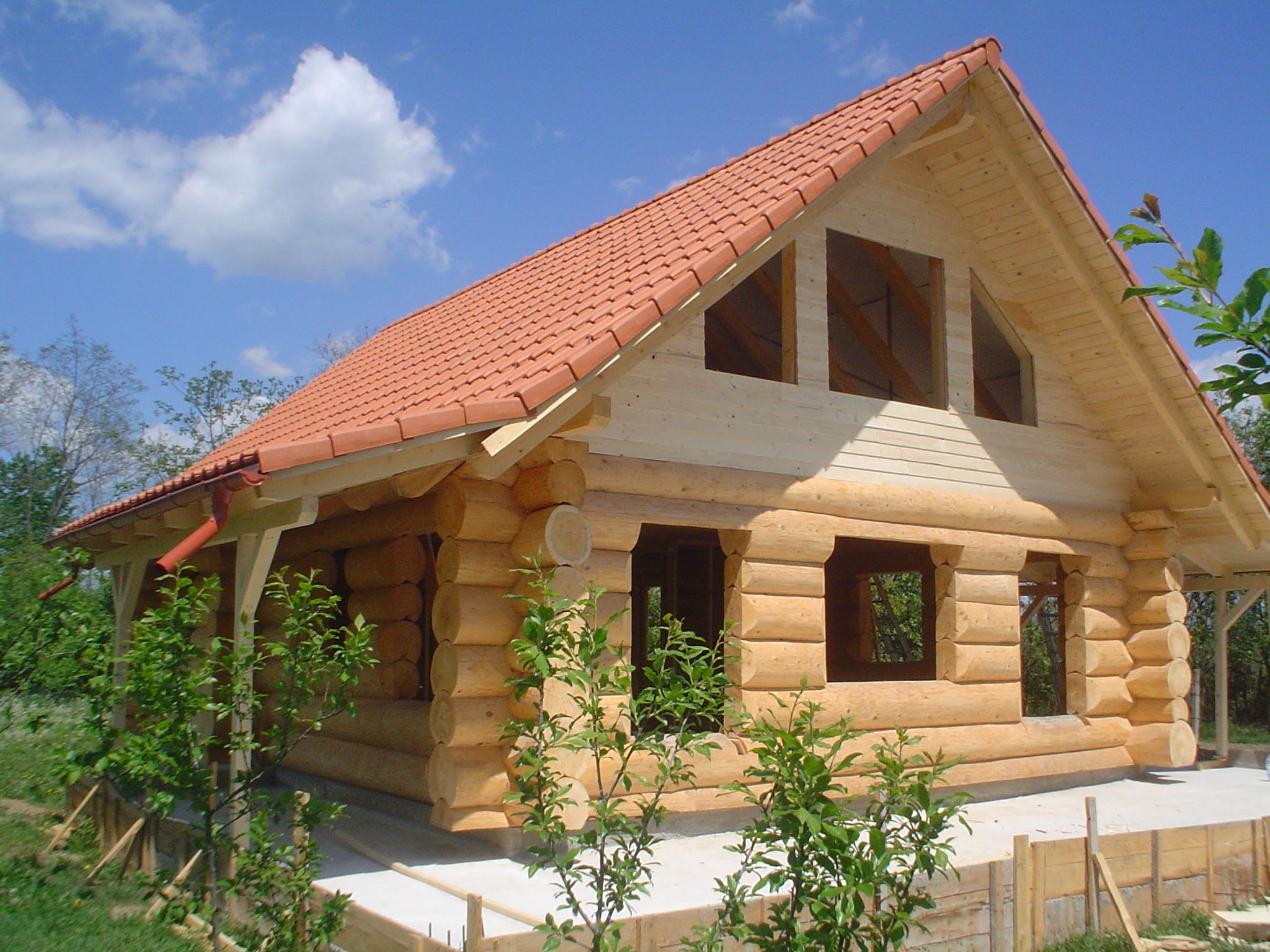 - Naturstammhäuser (Häuser aus unbehauenen, geschälten Stämmen)